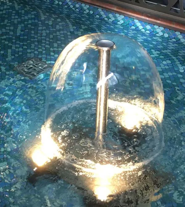 The Bell Jet for Water Features is a visually captivating addition to any pool, fountain, or decorative water body. Known for its graceful and smooth bell-shaped water effect, it creates a serene and sophisticated ambiance in outdoor or indoor settings. The water flows in a uniform, laminar manner, which means it moves smoothly without turbulence, resulting in a clean, transparent dome of water that appears to float effortlessly in the air. This effect adds a touch of elegance, making it a popular choice for enhancing the aesthetics of landscapes, resorts, or private gardens.